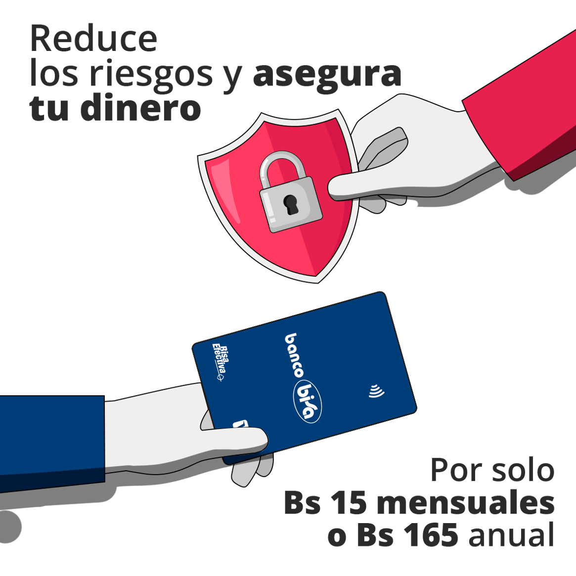 Para tu comodidad, el pago es automático. Se debita una pequeña cantidad mensual directamente de tu cuenta. No tienes que recordarlo ni hacer filas; estarás protegido las 24 horas del día, los 365 días del año por un monto mínimo de Bs. 15.